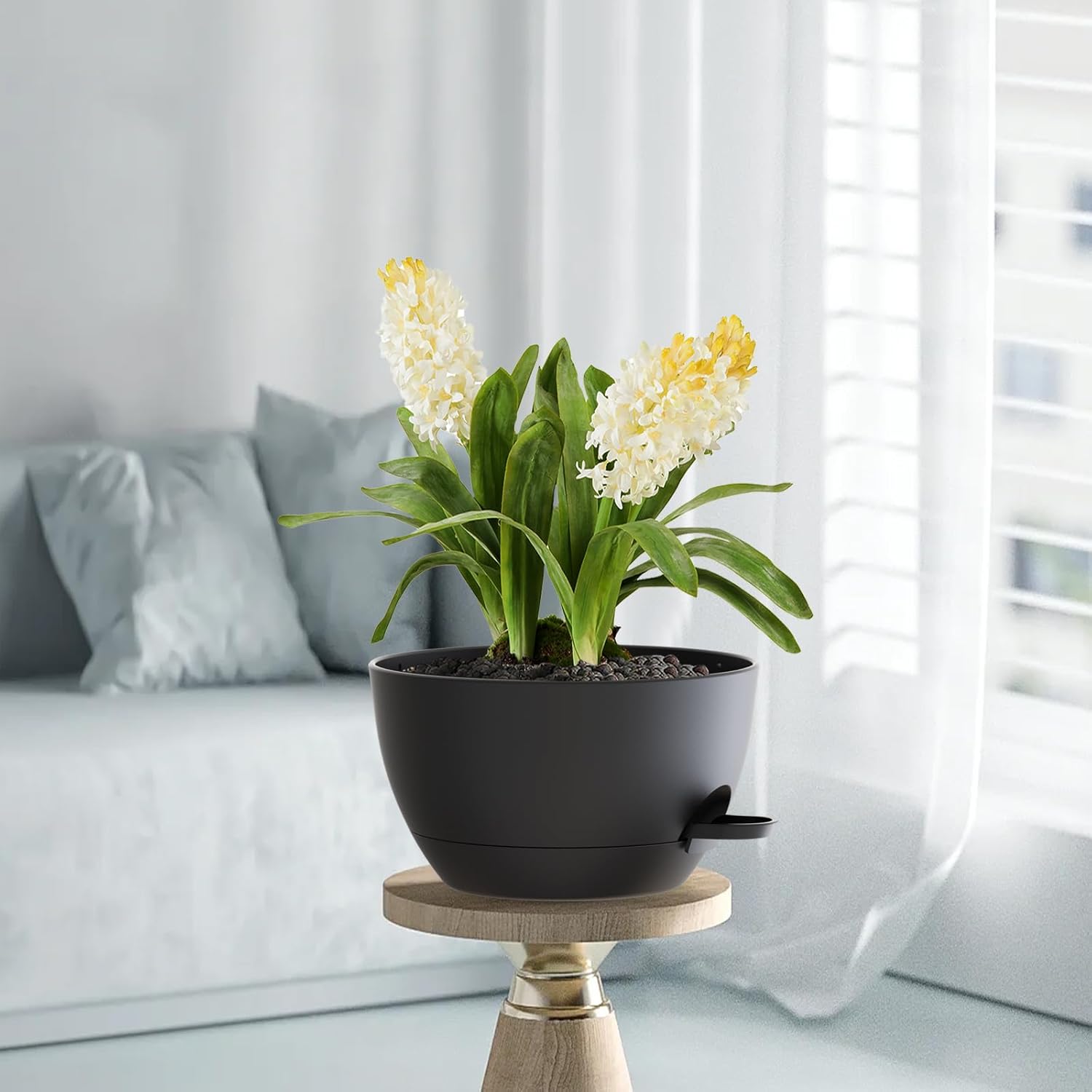 • 【Ventilation & Drainage】12-Inch self-watering hanging planter has multiple drainage holes between the planter and the tray, which can effectively drain and ventilate the plant. It can drain excess water and prevent overwatering, which is beneficial to promote the respiration of plants