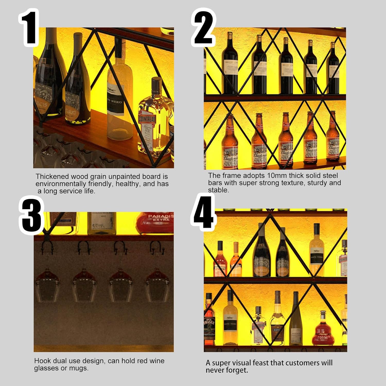• Multi-function: Well-designed wine glass rack for wine glasses and free placement of wine. This wall-mounted wine rack can not only store wine bottles, but also other items to make your space more sophisticated.