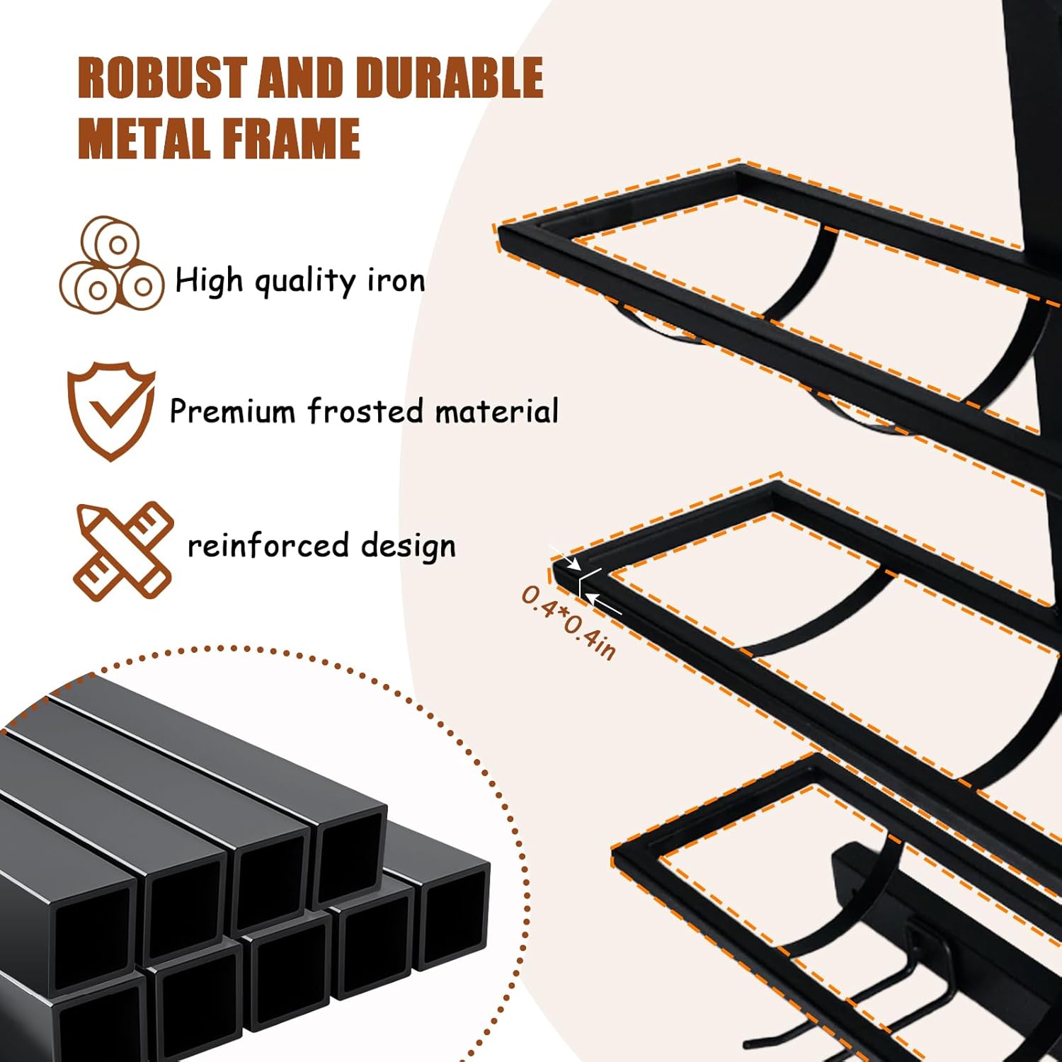 • Metal and high-strength welding technology:The simple and generous design of wine cellar racks is made of high quality iron and black high temperature baking varnish process. Excellent welding ensures that it is durable and can withstand large weight