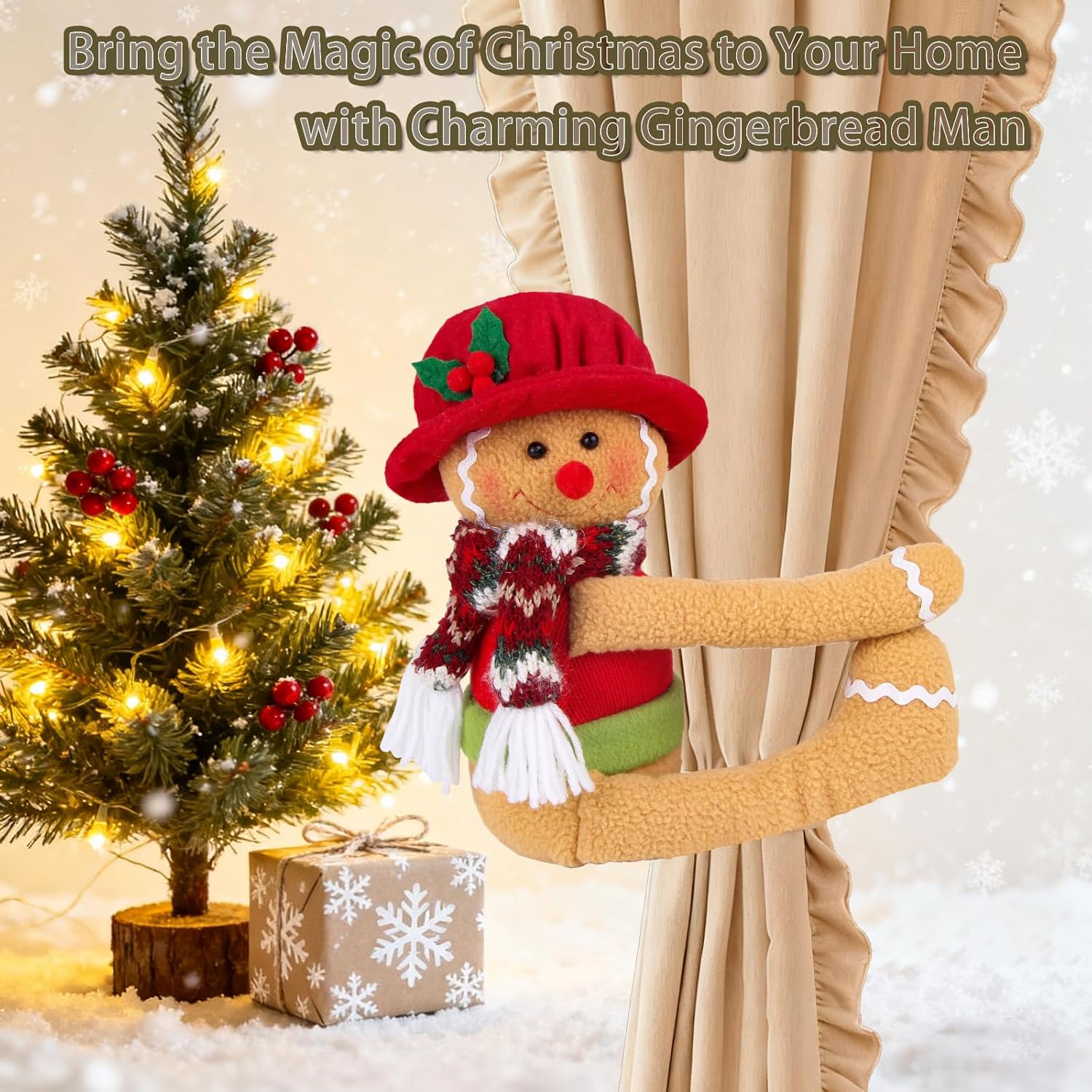 • 🎄Warm Christmas Atmosphere : cute gingerbread man tree hugger can be used to hug a Christmas tree topper, hold open curtains, wrap around wine bottles as a centerpiece,adding acohesive and festive charm. Its flexible Velcro hands also allow for easy placement on shelves, stair railings, or in the car