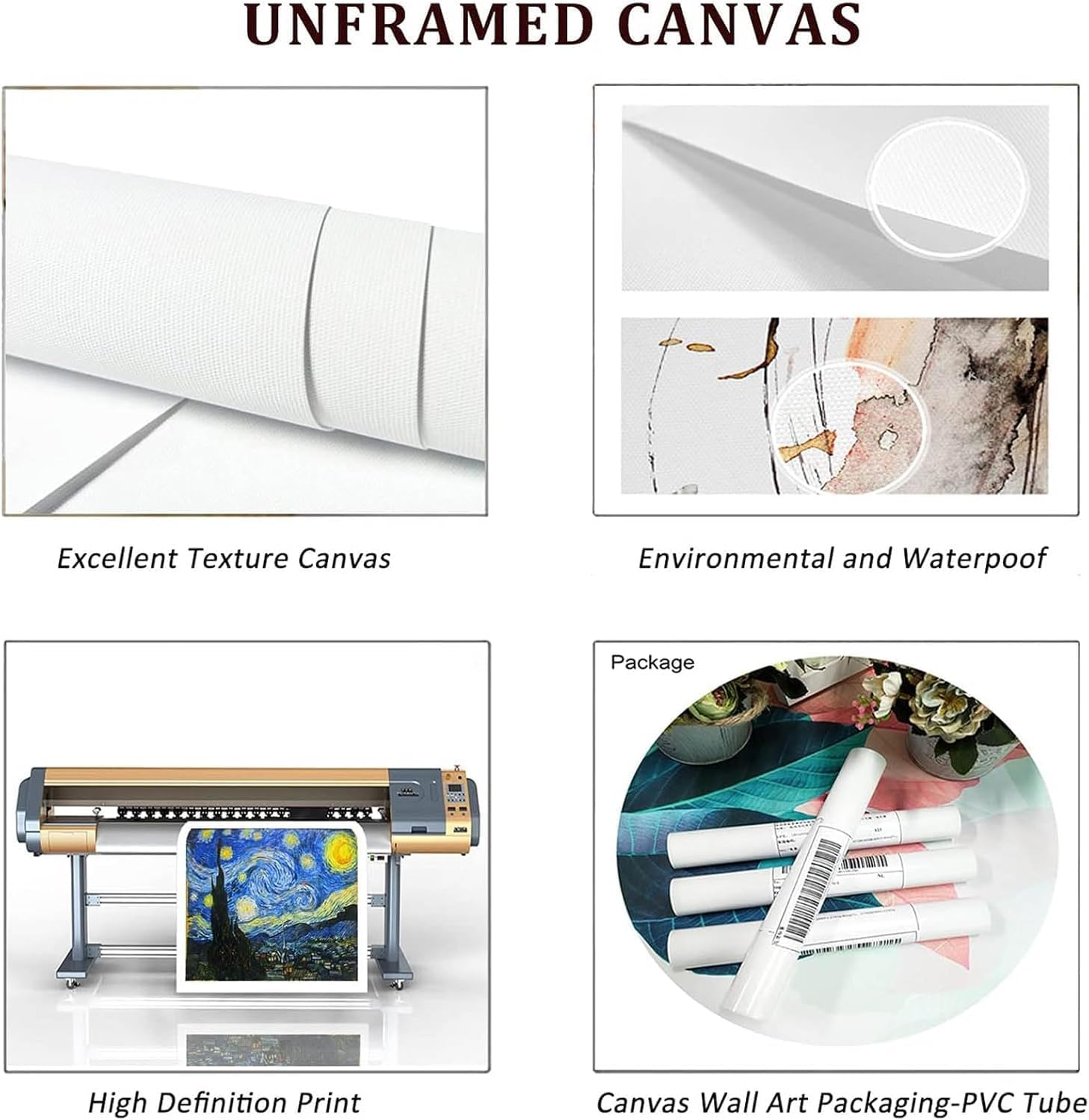 • 1.Canvas wall art specifications:Size:16X24inch,frameless,high-definition canvas wall art prints,printing pictures on canvas,using high-quality environmentally friendly ink,not easy to fade. The colors are beautiful and shiny,high-definition Giclee modern canvas print artwork.